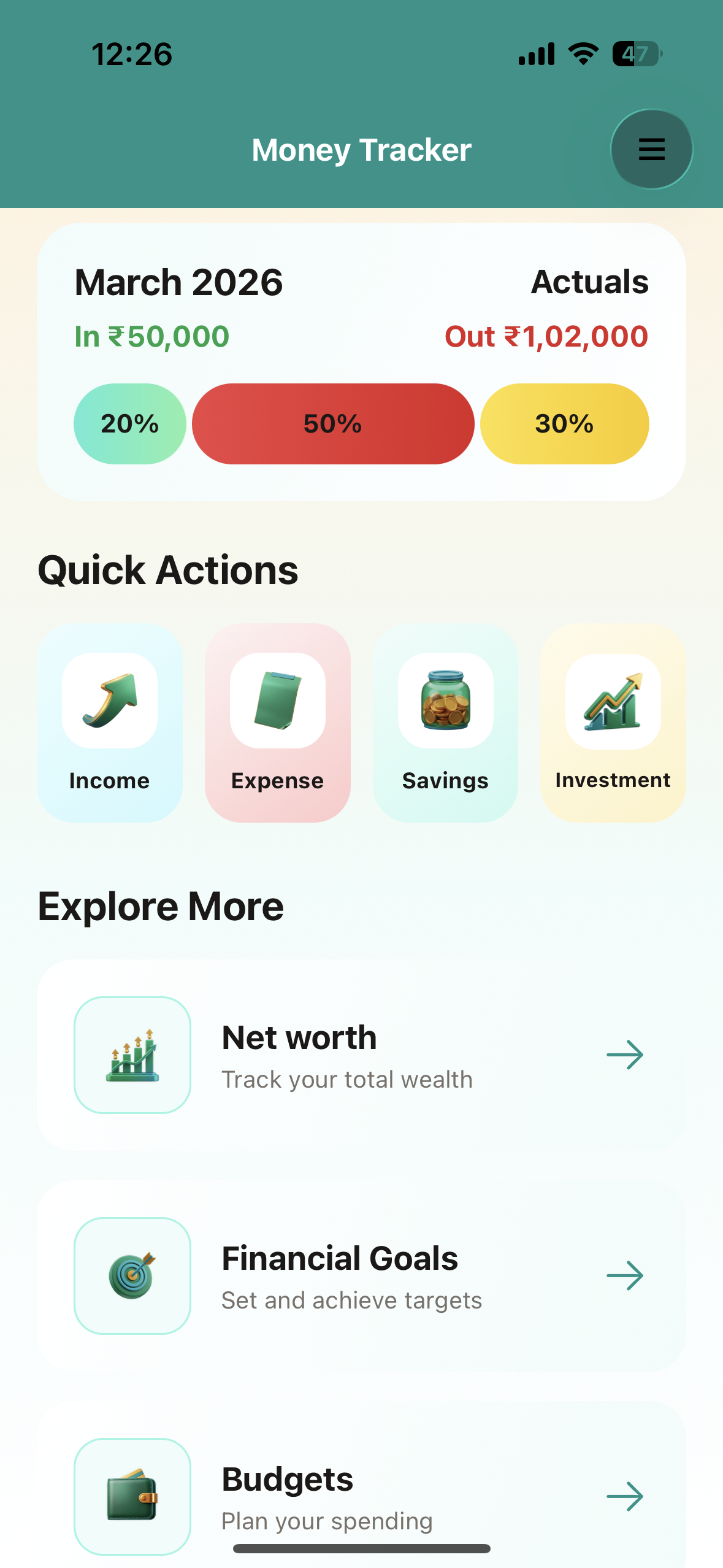 Your financial data never leaves your device. No servers, no cloud, complete privacy guaranteed.